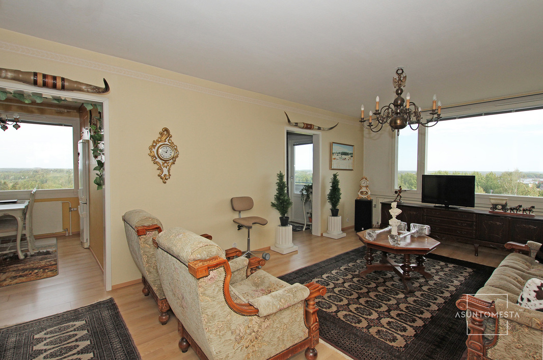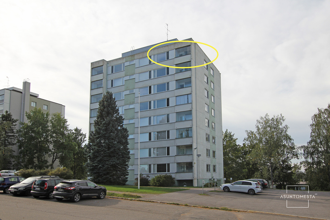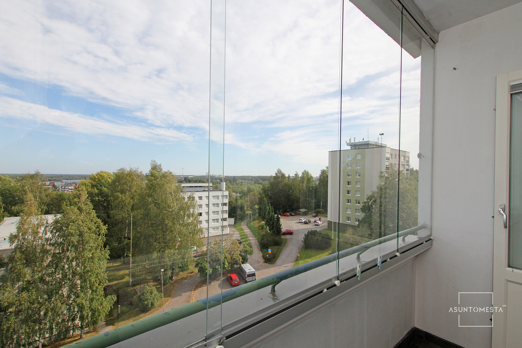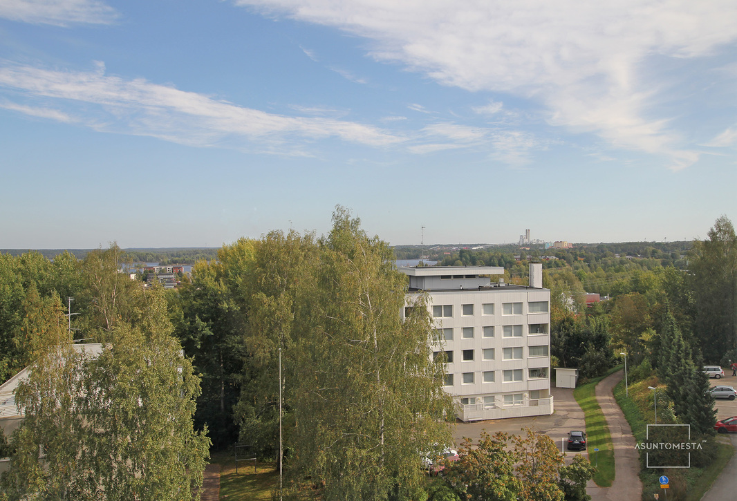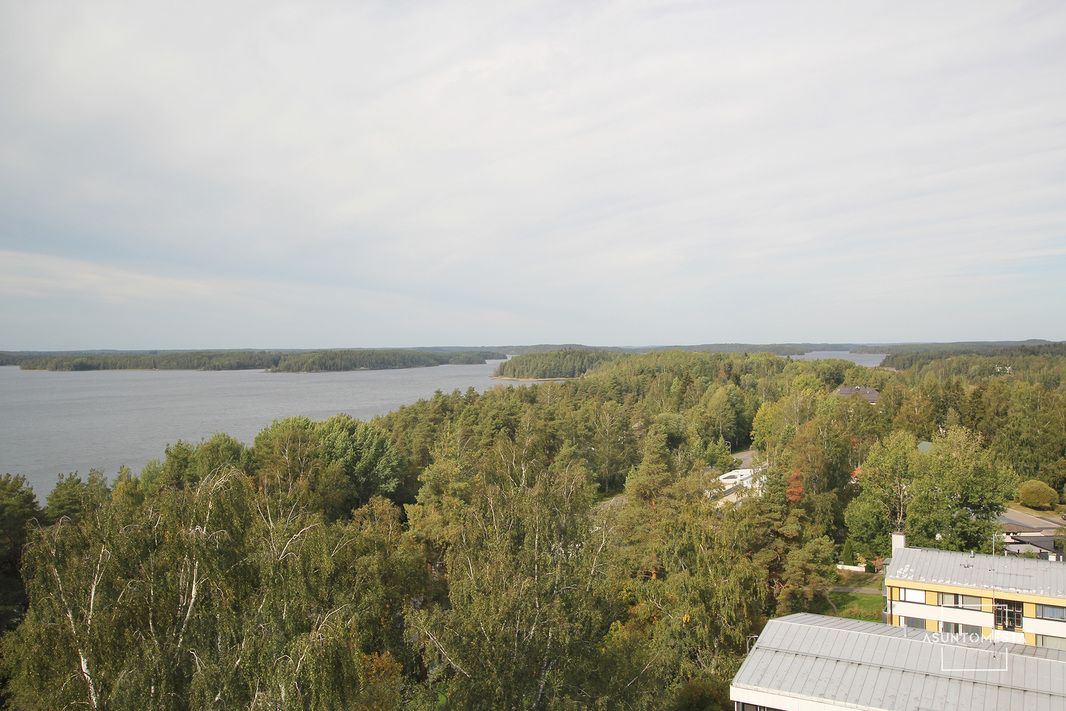 Maisemat, maisemat ja maisemat! Tällaisia ei Lappeenrannasta kovin monesta asunnosta löydy. Mäen päältä ja talon ylimmästä 8. kerroksesta näkyy niin pitkälle, kuin silmä kantaa. Alas jää kadut, talojen katot, puiden latvat ja näkymää riittää pitkälle horisonttiin ja tottakai myös Saimaalle.