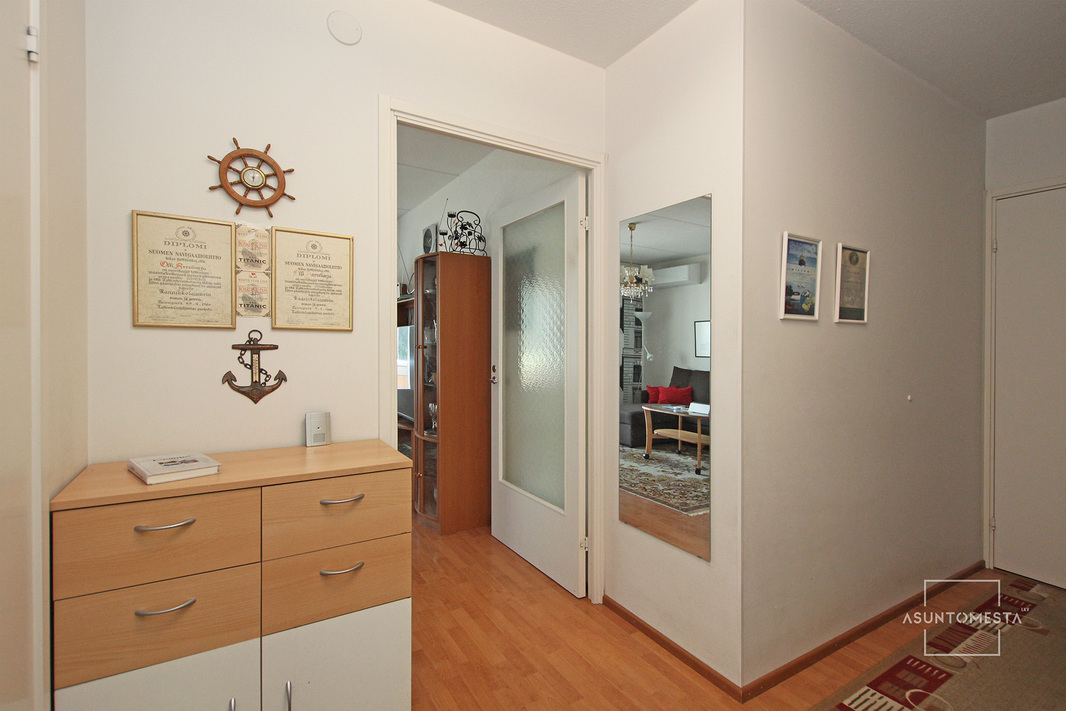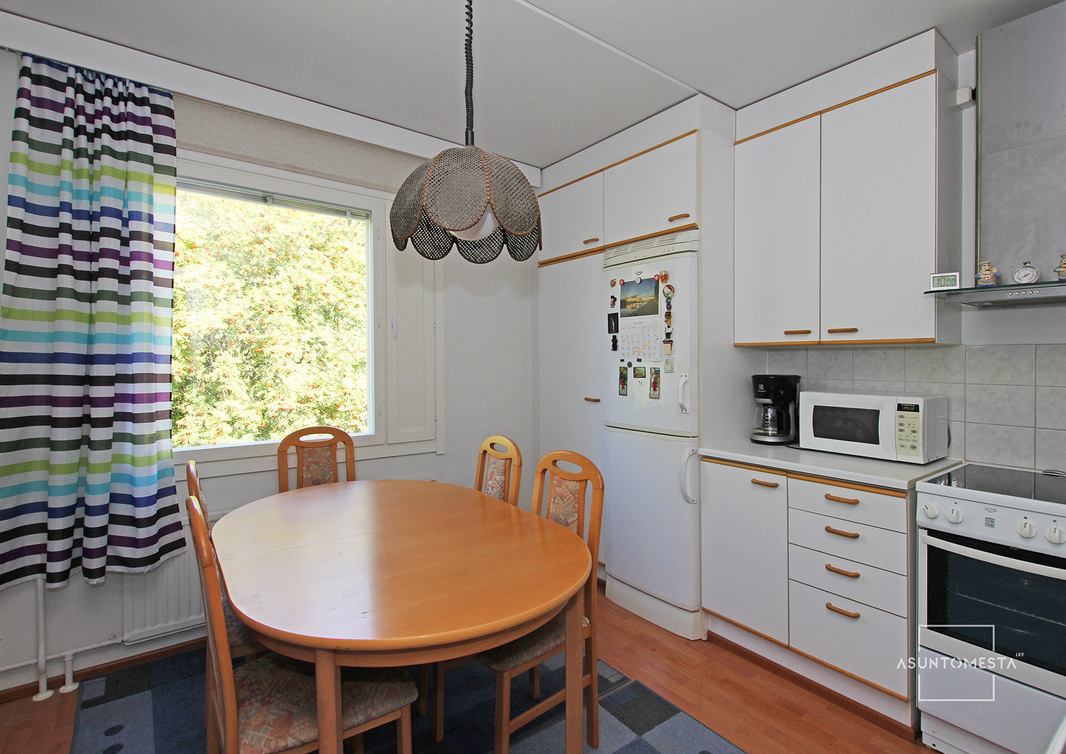 Tarvittaessa nopeasti vapautuva ja siistikuntoinen huoneisto kaikkien palveluiden ääreltä.