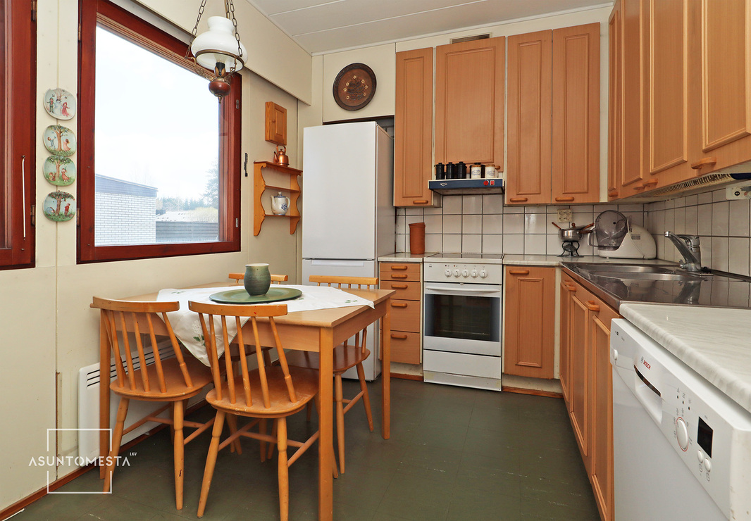 Palveluiden läheisellä sijainnilla rivitalon päätykolmio. Vuoden alussa jo valmiiksi uusittu kylpyhuone ja muut tilat voit muokata sisustukseltaan mieleiseksi. Talon katto myös juuri uusittu.