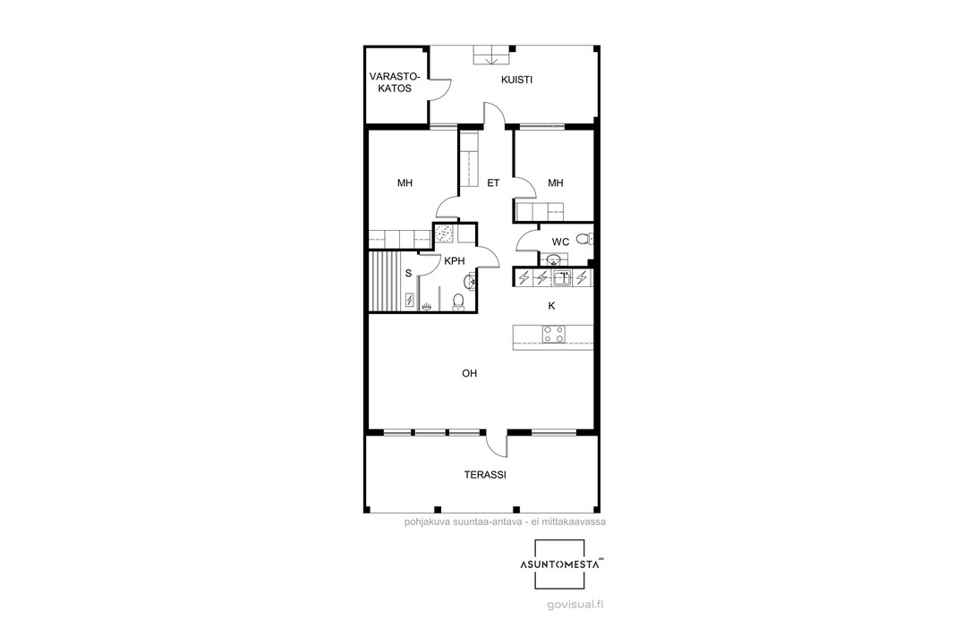 | Huoneistoselitelmä | 3h, k, s, erill. wc, terassi |
