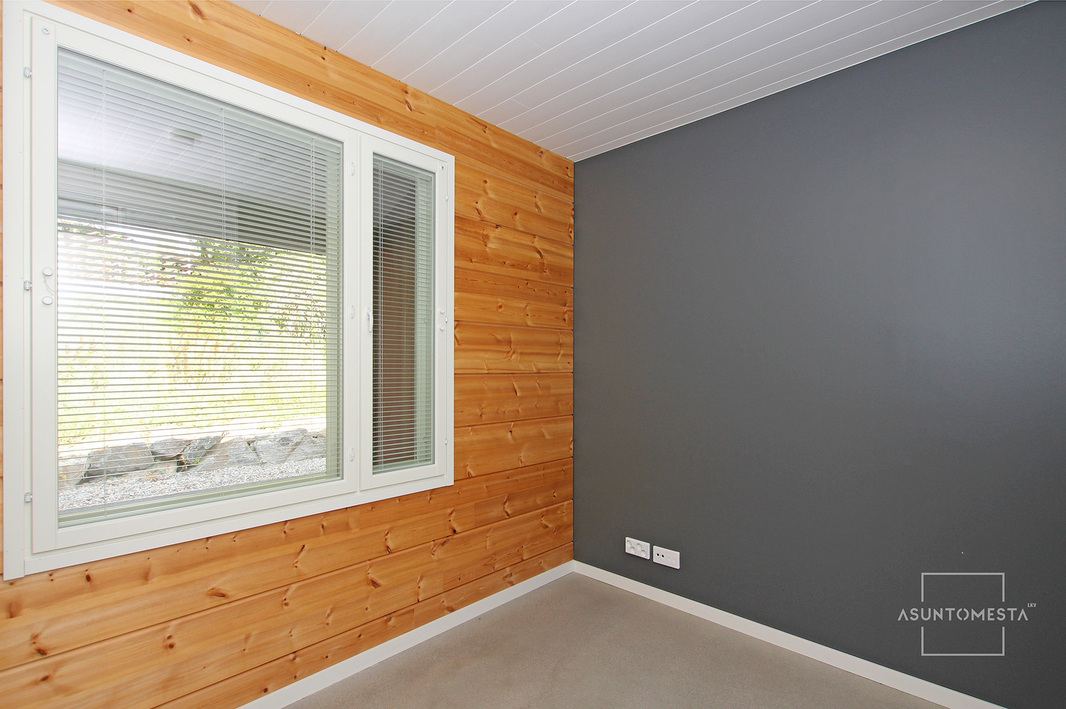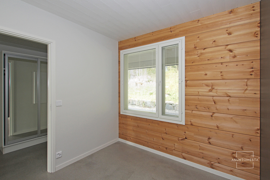 | Makuuhuoneen kuvaus | Ulkoseinien seinäpinnat maalattua hirttä, muutoin maalattua kipsilevyä, lattia hiottua ja kiillotettua betonia. |