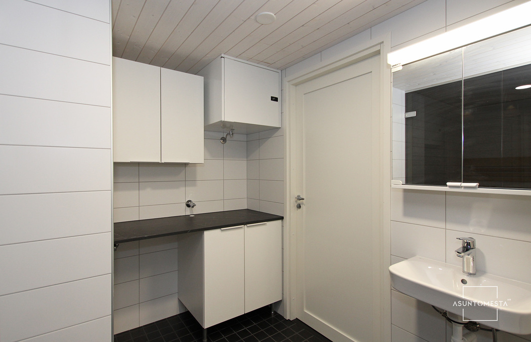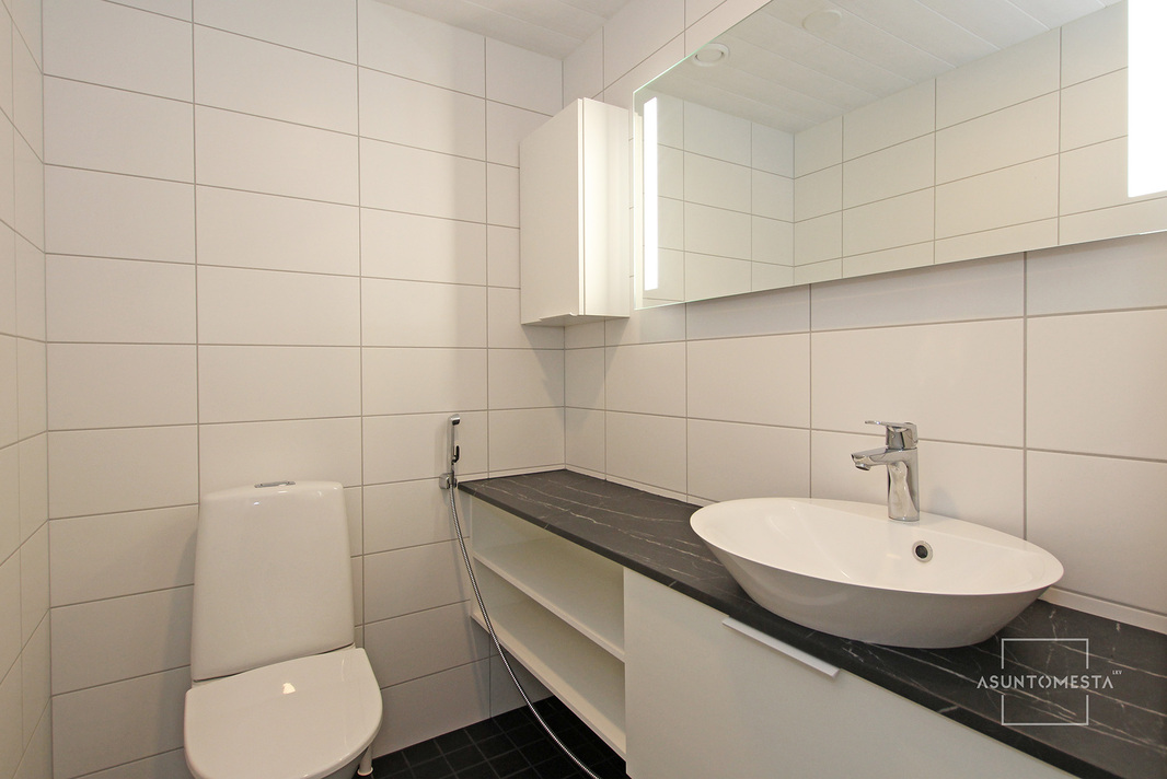 | WC-tilojen kuvaus | Malja-allas, ja allaskaapisto, yläkaappi, valaisinpeili, upotettu kattovalaisin, wc-istuin, bidee-suihku. Toinen wc-istuin pesuhuoneessa. |