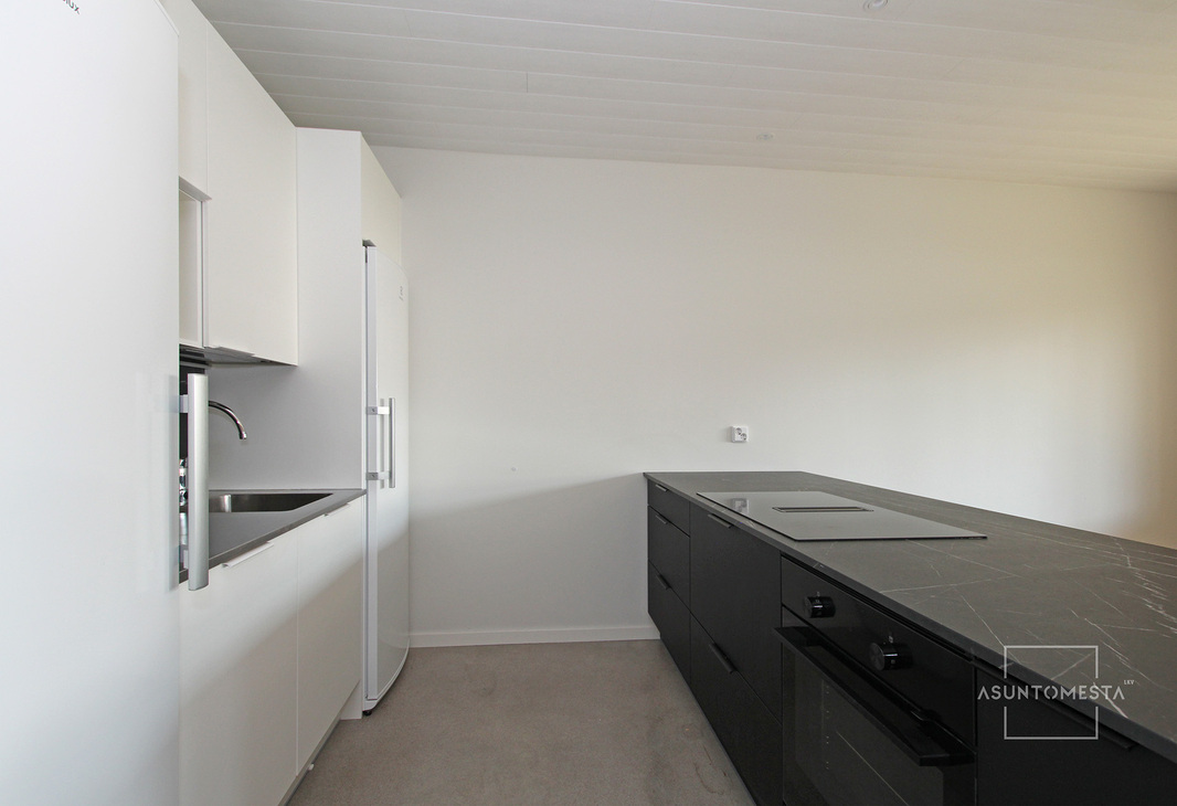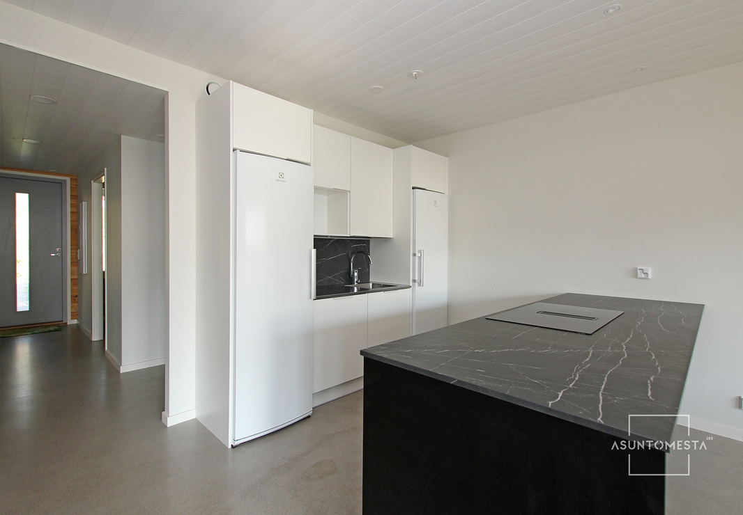 | Keittiön varustelu | Niemekkeessä kivitaso, tiskialtaan luona laminaattitaso. Ulkoseinien seinäpinnat maalattua hirttä, muutoin maalattua kipsilevyä, lattia hiottua ja kiillotettua betonia. Mahdollista asentaa päälle myös esim. laminaatti. |