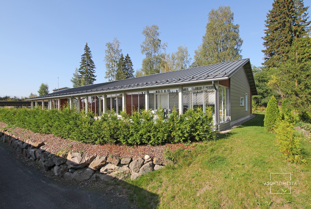 | Taloyhtiössä muuta | Aurinkovoimala 10,6 kWp, jätekatos, tekninen tila, talovarasto, vanha ja suojeltu hirsiaitta. Elisa valokuitu, Elisa Taloyhtiölaajakaista 25M. Koneellinen tulo- ja poistoilmanvaihto lämmön talteenotolla. Huoneistojen välissä puurakenteiset, ääntäeristävät db-seinät. |