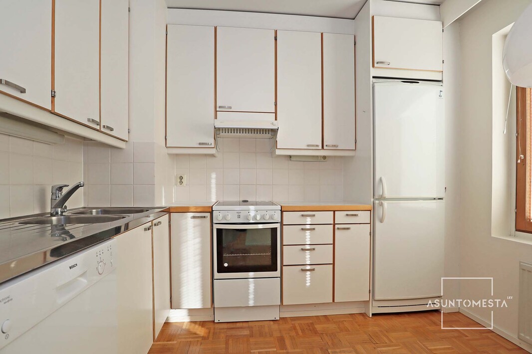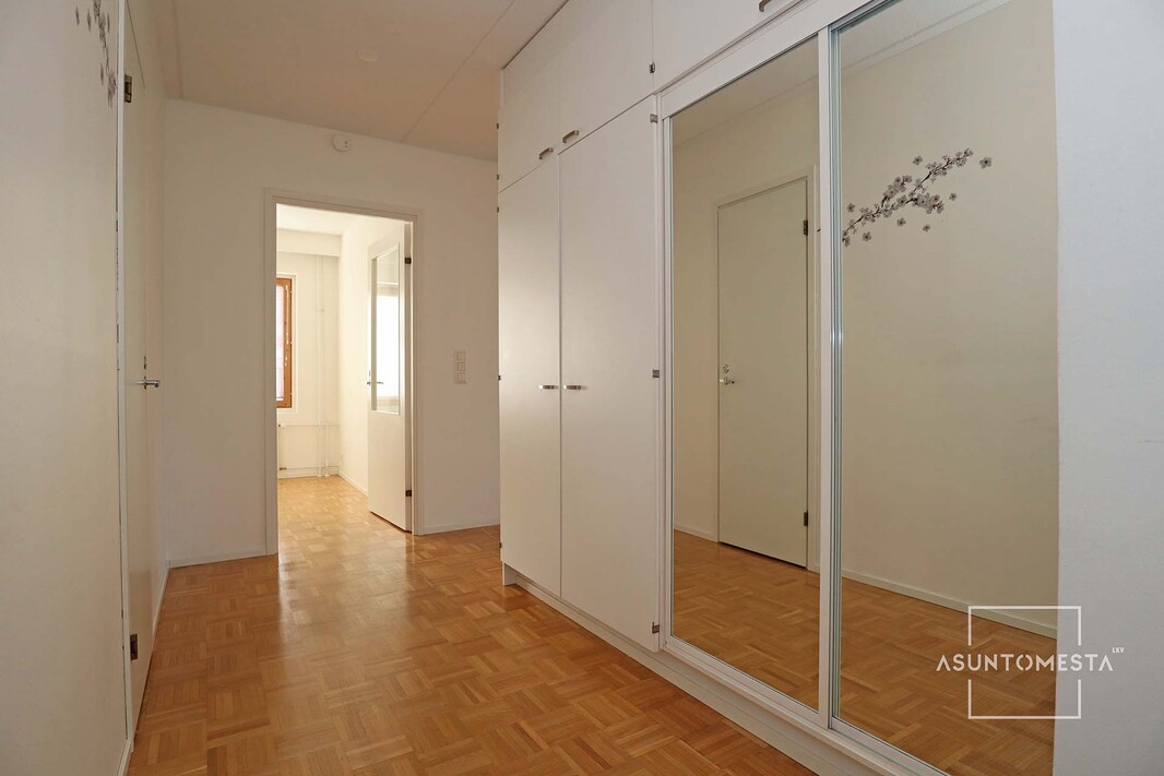 Hyvän mallinen päätyhuoneisto, jossa vain yhden seinän takana naapuri. Asunnosta löytyy lähes kaikki mitä voi toivoa: lasitettu parveke, vaatehuone, oma sauna ja reilusti komeroita.