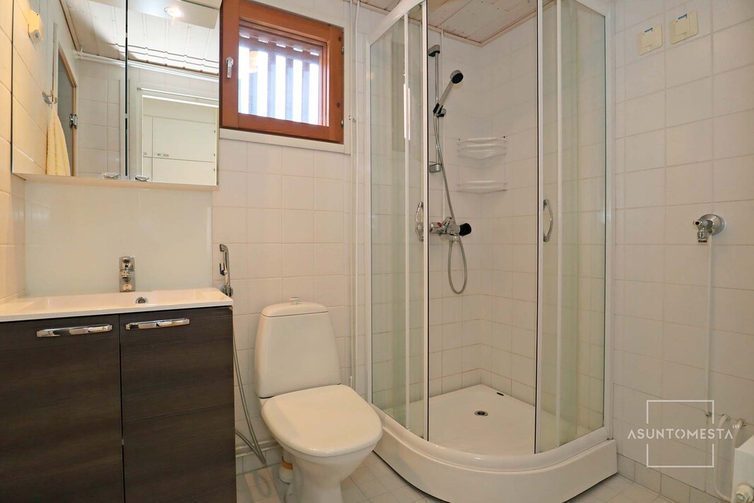 Kaiken muun hyvän lisäksi sekä kylpyhuoneessa että saunassa on ikkuna. Liikenne ei liiemmin häiritse päättyvän kadun varrella. Kannattaa tutustua, jos keskusta kotia etsii.
