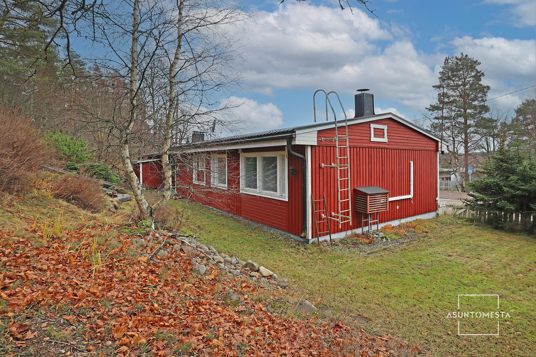 Punainen omakotitalo, jossa on mukavat tilat asumiseen ja kaunis rinnetakapiha, joka odottaa uutta asukasta laittamaan sen loistoonsa!