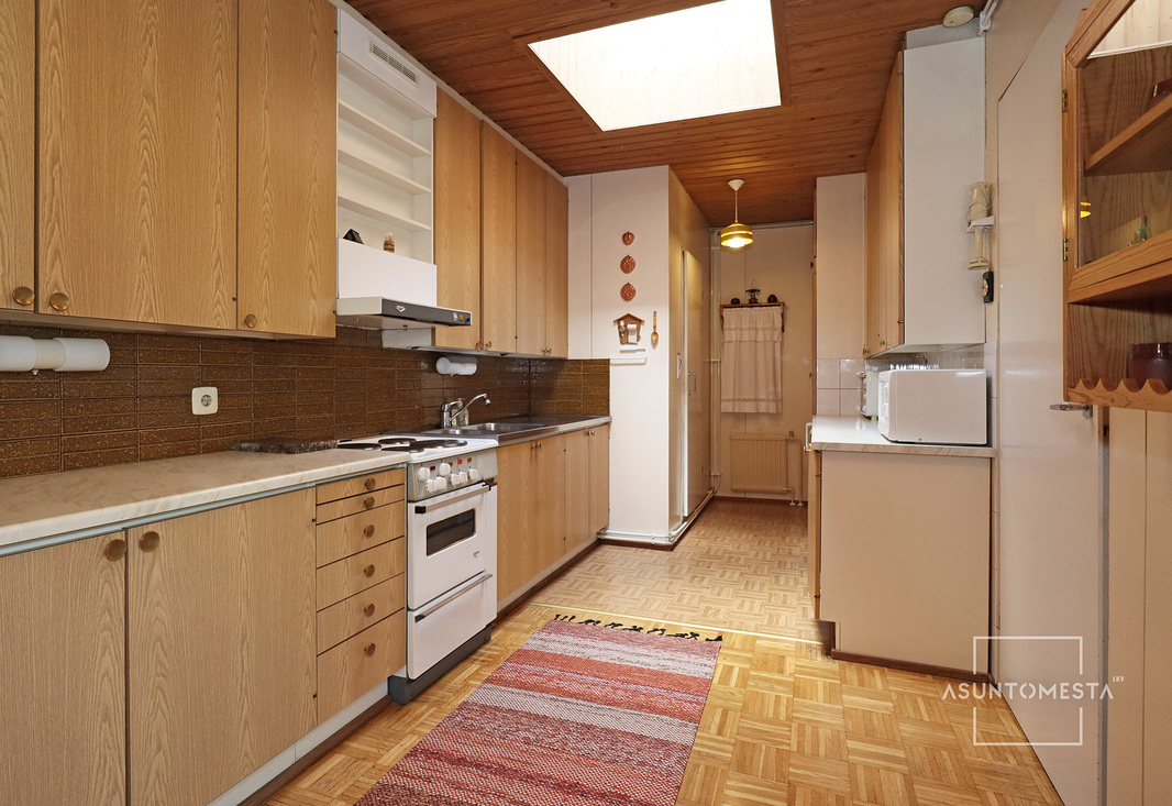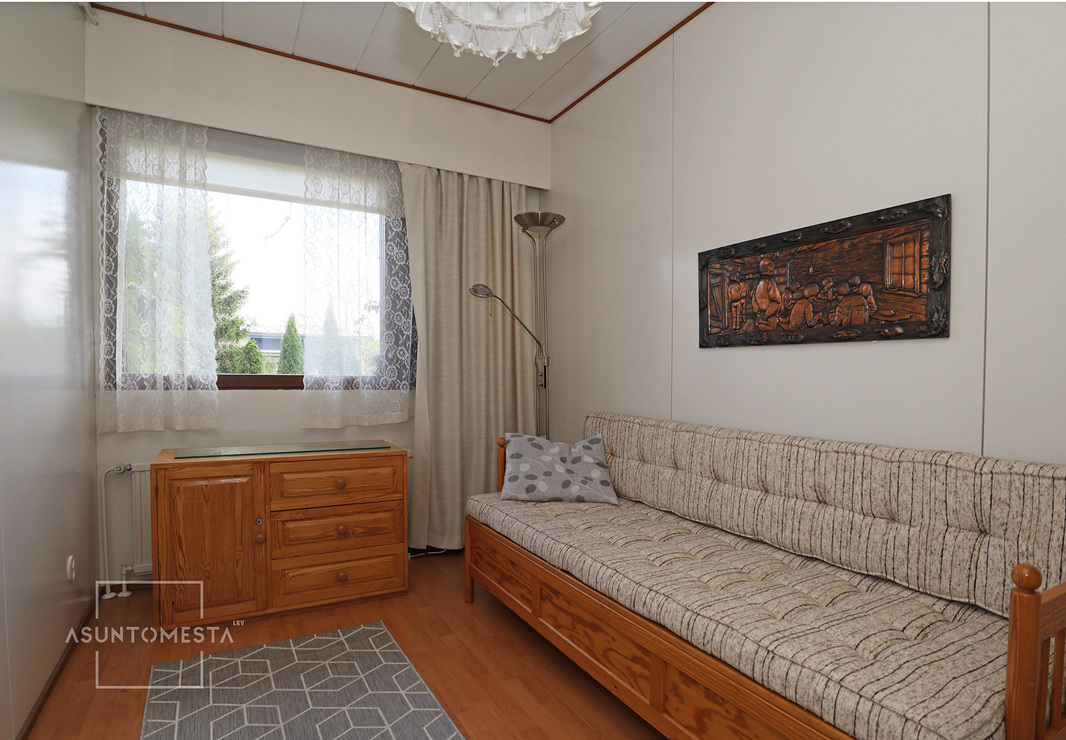 Kokonaisneliöihin sisältyy kolme makuuhuonetta, tilava ja valoisa olohuone, joka ruokailutilan kautta yhdistyy keittiöön.