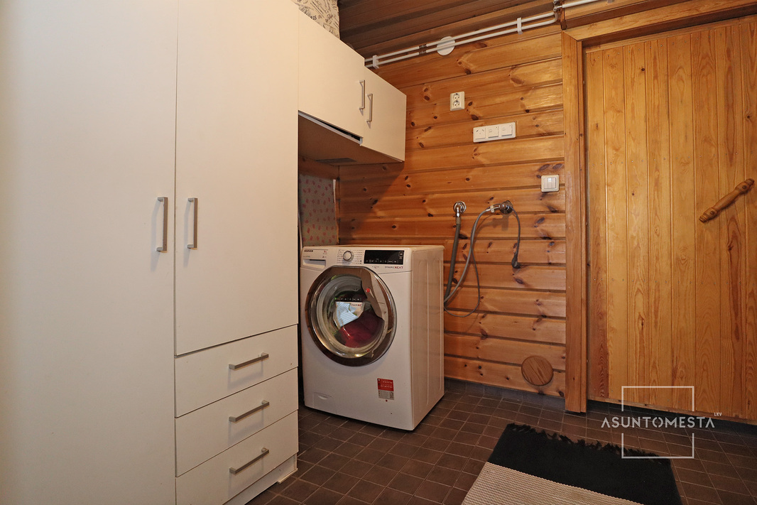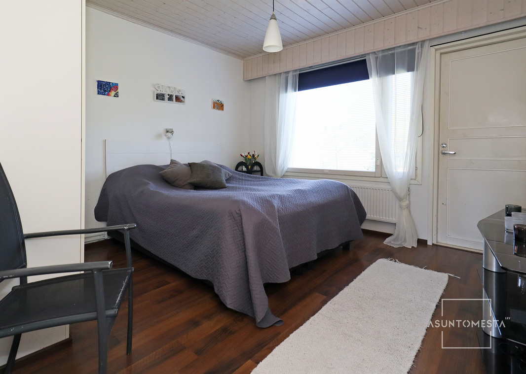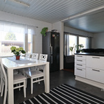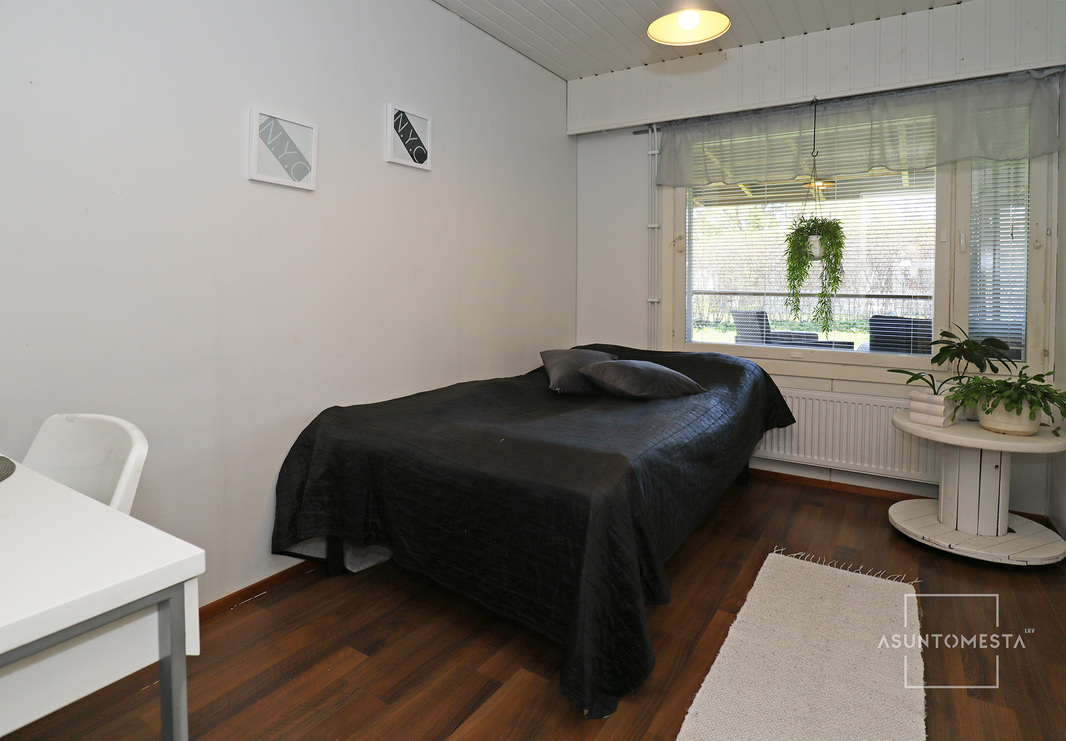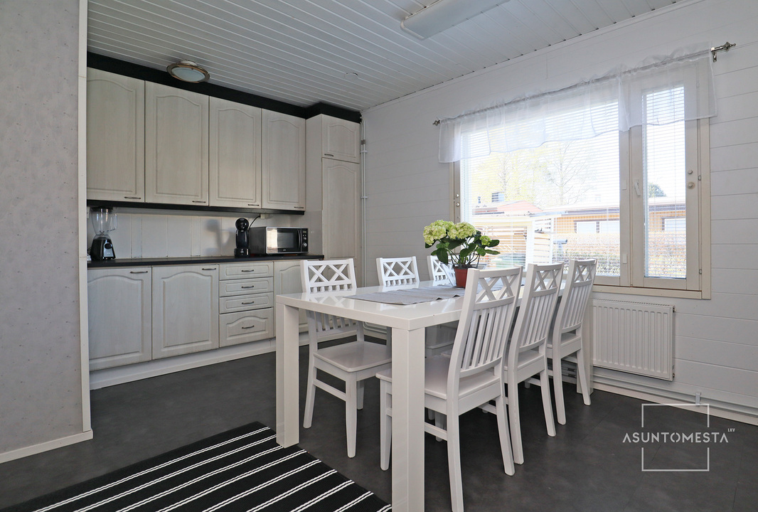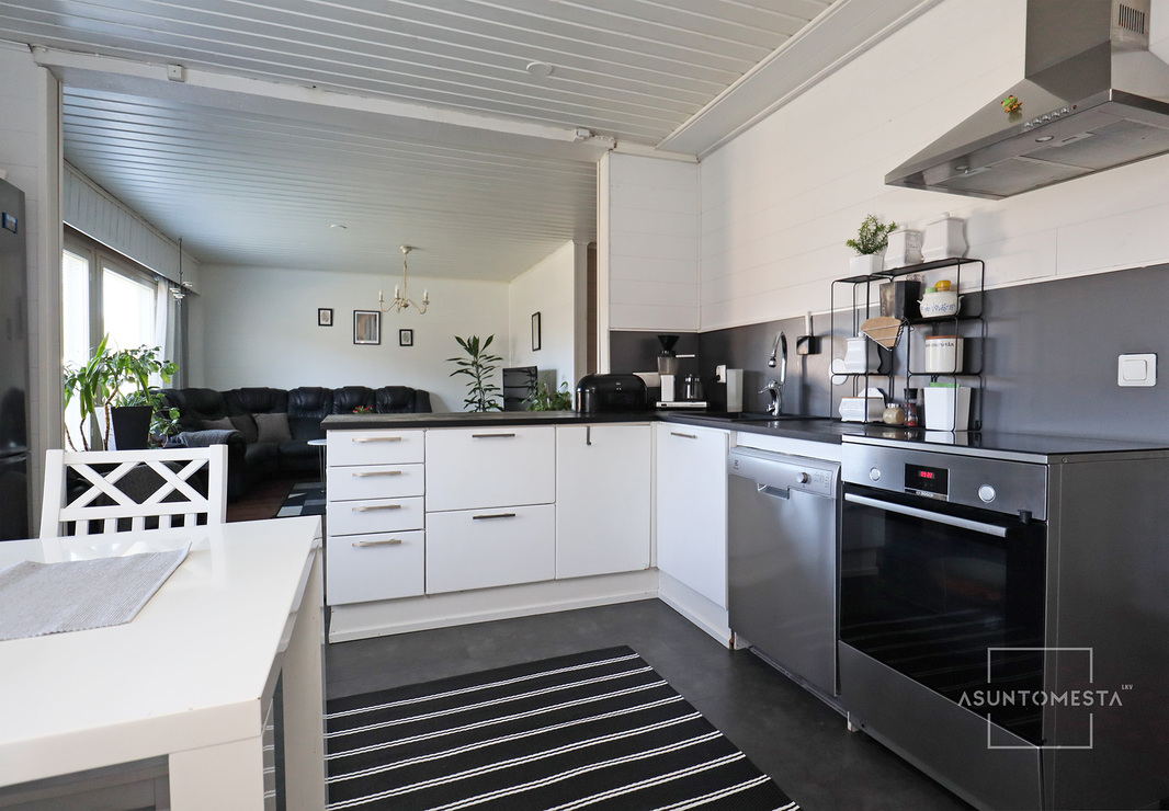 Keittiöstä on kaadettu seinä pois ja saatu nykyaikanen, avoin keittiö- ja olohuonetila, joka on ehdottomasti tämän kodin sydän. Kolme makuuhuonetta, joista saa pienellä pintaremontilla juuri omanväriset. Saunaosastolta on oma käynti suojaisalle terassille ja puutarhapiha on juuri sopivankokoinen, että sen jaksaa pitää mintissä! Plussana vielä monen toive: oma autotalli.