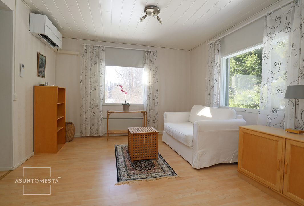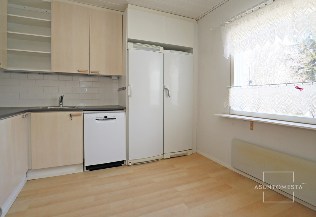 Päiväkoti ja koulu lapsiperheen iloksi on vajaan kilometrin päässä ja kaupallekin on vain 1,5 km.