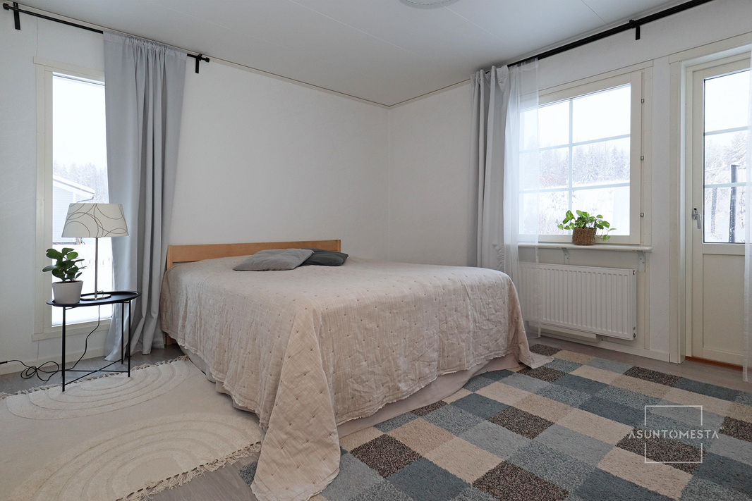 | Makuuhuoneen kuvaus | Yhdestä makuuhuoneesta käynti takapihan terassille. |