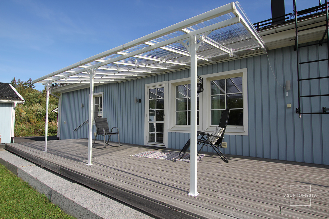 | Pinta-alojen lisätiedot | Kahden auton lämmin autotalli 64 m². Asuinrakennuksen kerrosala 133,5. Takaterassi 36 m² |