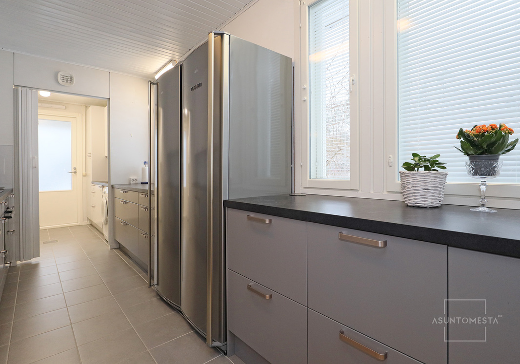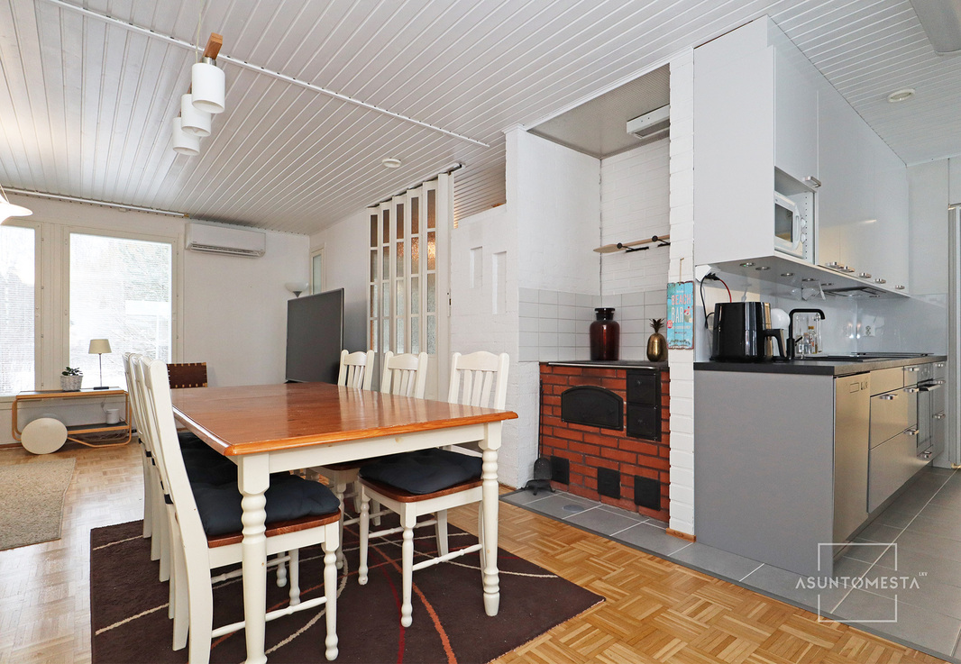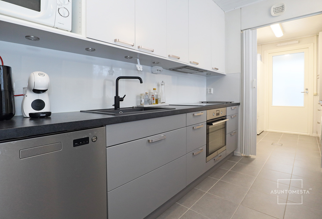 | Keittiön varustelu | Keittiö uusittu 2021. Paljon työtasotilaa ja laatikostoja. |