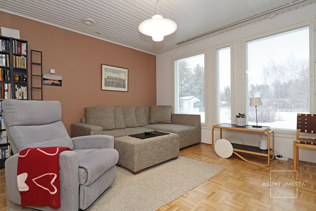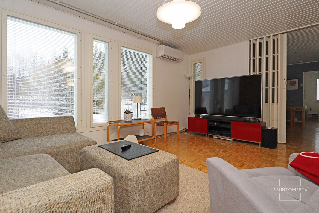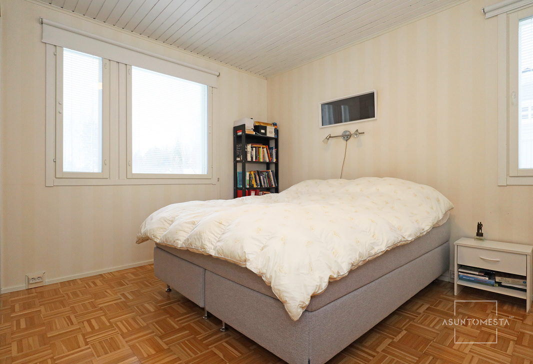 | Tehdyt remontit | Vesikate uusittu 2000. 2006 saunaosasto remontoitu, IV-kone uusittu ja IV-kanavat nuohottu. 2007 kuntotarkastus. Julkisivumaalaus 2007. Parketinhionta ja lakkaus 2007. 2014 ulko-ovet uusittu. 2016 yläpohjan lisälämmöneristys. 2017 IV-kanavien nuohous, ilmamäärien säätö ja puhallinmoottorien uusiminen. 2018 ikkunat uusittu. 2021 keittiön ja kodinhoitohuoneen uusiminen. 2022 ilmalämpöpumpun asennus. 2024 kylmäkaappien uusiminen. |