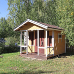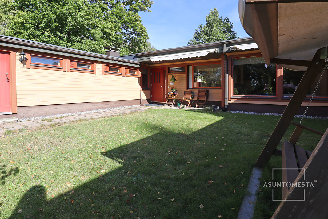 | Pihan kuvaus | Etupihan oleskelualue etelän suuntaan. Pihassa myös leikkimökki. |