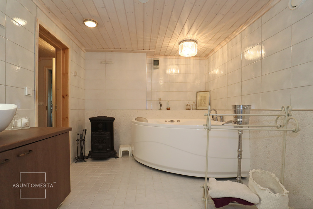 Vuonna 2003 remontoitu talo on täynnä upeita yksityiskohtia, kuten korkeat kattopalkit, suuret ikkunat ja juhlava ruokailuhuone, jotka luovat ainutlaatuisen tunnelman. Talossa on myös viisi makuuhuonetta sekä erillinen, monikäyttöinen harrastetila, joka on täydellinen esimerkiksi elokuvateatteriksi tai muuhun vapaa-ajanviettoon.