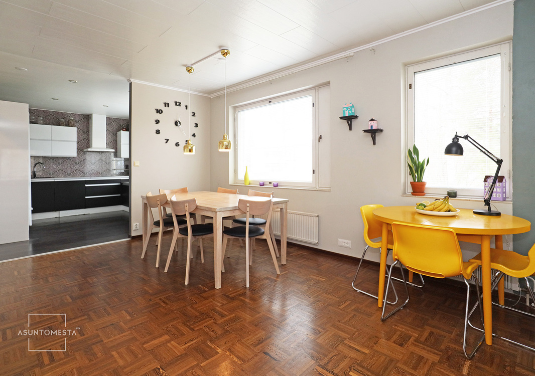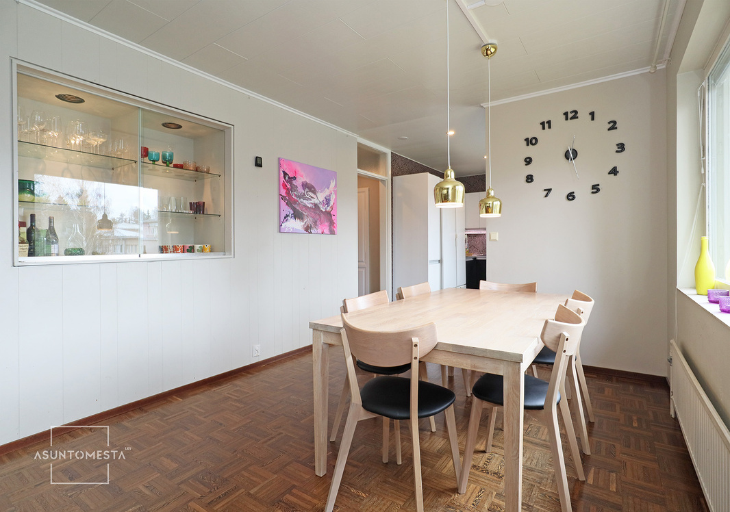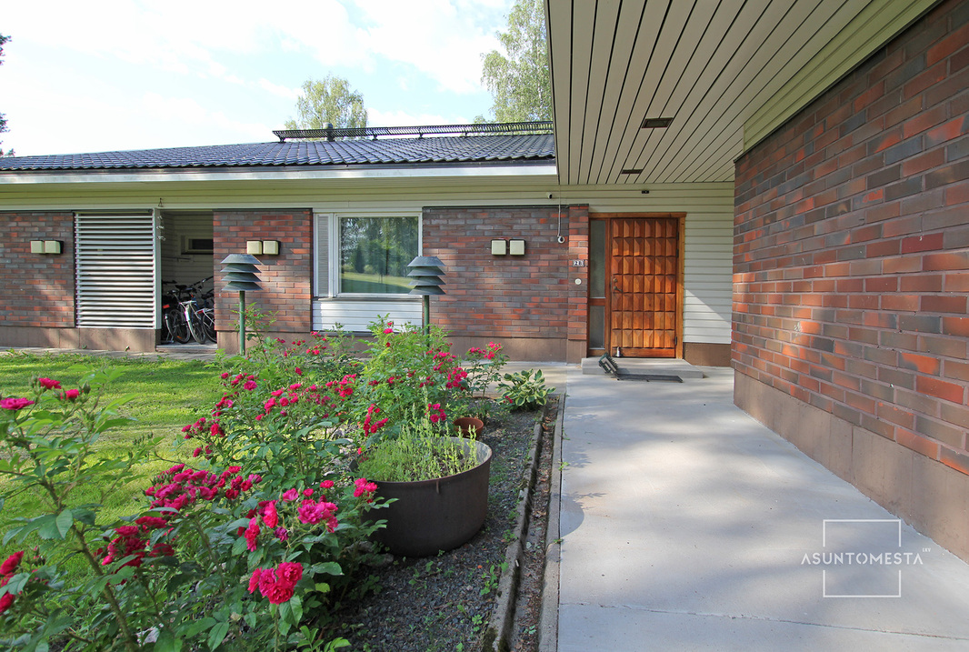Pappilaksi aikoinaan vuonna 1977 rakennettu aumakattoinen täystiilitalo, joka on käynyt läpi mittavia uudistuksia 2010-luvulla ja sen jälkeenkin. 70-luvun tunnelmaa on säästetty juuri sopivasti pienten yksityiskohtien avulla. Maalämpö ja ilmalämpöpumppu lämmittävät verrattain pienellä rahalla, vaikka neliöitä talossa onkin useampi sata. Monikäyttöiset tilat mahdollistavat esim. työn tekemisen kotona tai monenlaiset harrastukset.